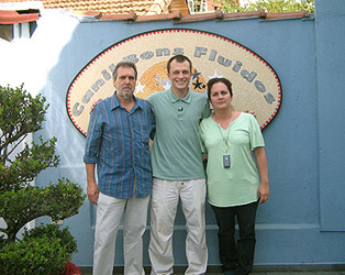 Na foto, com Jose Carlos e Maria Eugenia, registrou a sua visita no Canil. |